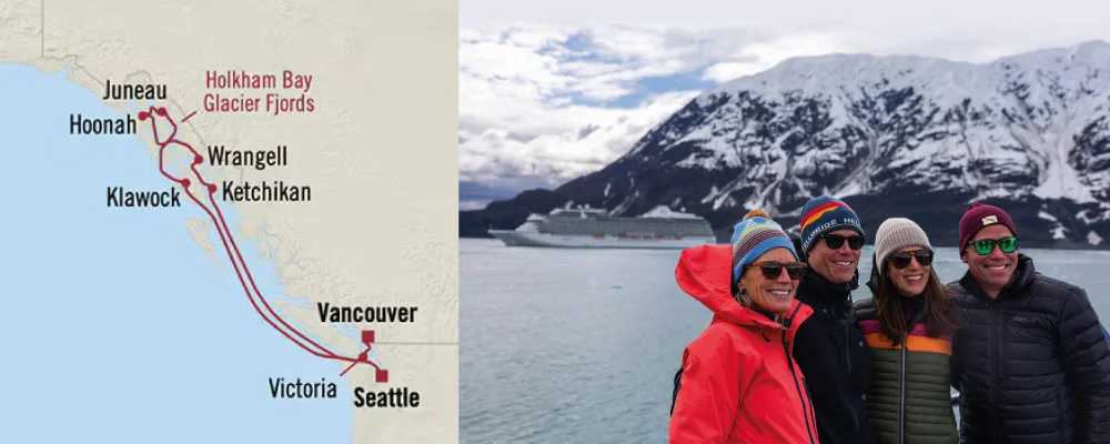 ITINERARIO: Seattle, Washington, Estados Unidos • Ketchikan, Alaska • Sitka, Alaska • Icy Strait Point (Hoonah), Alaska • Juneau, Alaska • Crucero Por Los Fiordos Glaciares De La Bahía De Holkham • Wrangell, Alaska • Victoria, Columbia Británica, Canadá • Vancouver , Canadá.